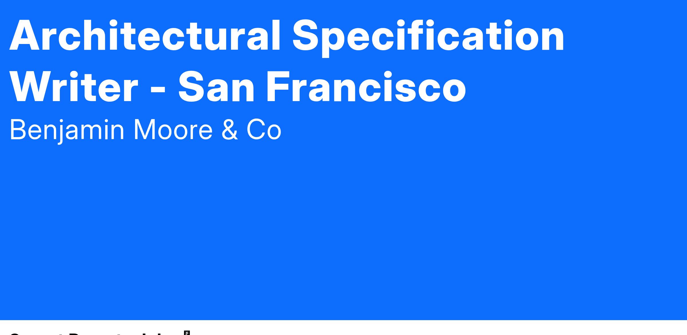 We are seeking an experienced Architectural Specification Writer to join our team and play a key role in producing and securing high-quality specifications for our paint products. This position requires a proactive and detail-oriented individual who can work both independently and collaboratively to support project teams and ensure precision in all documentation. The Architectural Specification Writer will contribute to the development and maintenance of paint specifications for clients and play an integral role in business growth. The territory covers San Francisco, California. The ideal candidate will reside within 30 miles of the city center.