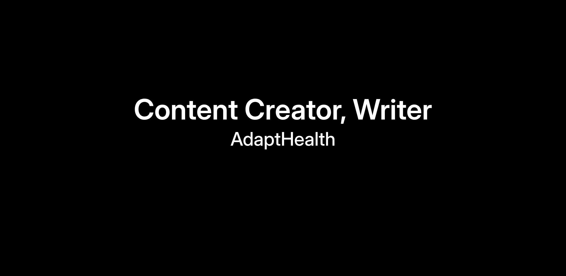 The Content Creator/Writer is responsible for creating, writing, proofing, and editing high-quality content for various channels, including marketing collateral, digital requests, social media platforms, internal promotions, etc. to address AdaptHealth marketing needs.