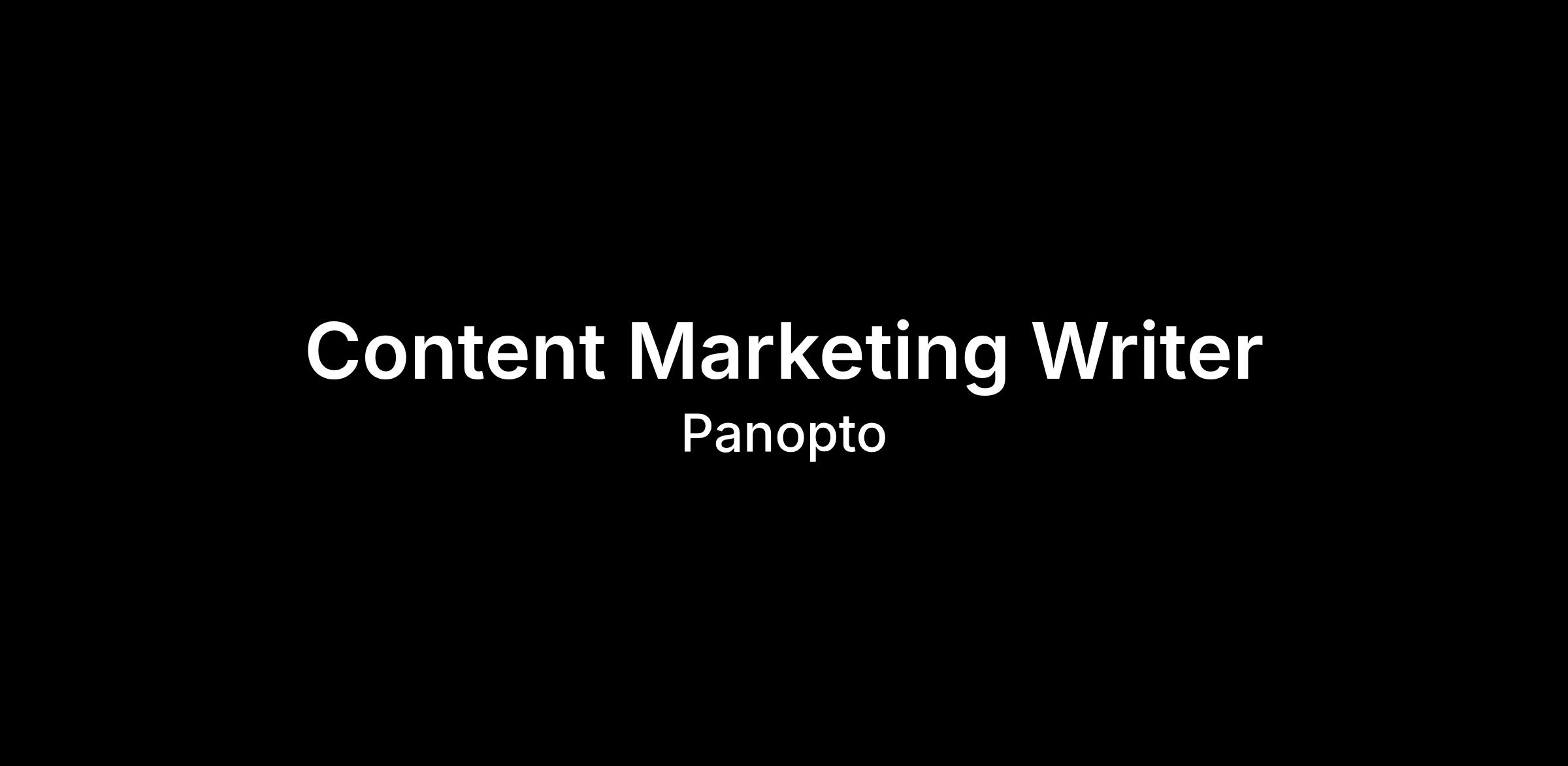 Join Panopto and be part of an exciting journey where your expertise in content strategy and storytelling will make a significant impact on our growth trajectory. If youâre a proactive, curious, and results-driven content professional ready to shape how we show up in the market and drive meaningful engagement, we encourage you to apply.
