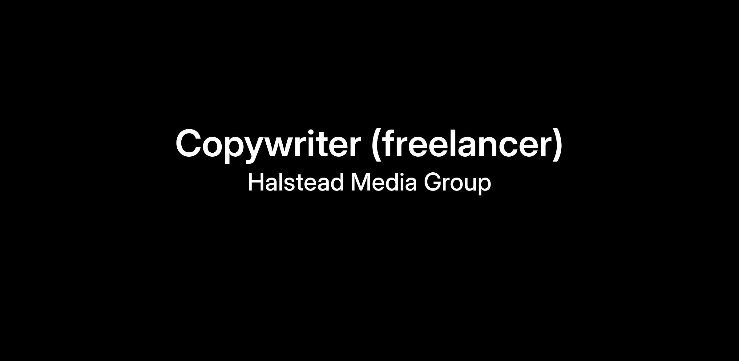 As a HALSTEAD freelance copywriter, youâll be working on website designs for various clients, you will be continuously provided space and opportunities to learn new ideas and push your creativity and craft forward. Rather than focusing on only one brand with one message, you will be tasked with jumping between different projects, different clients, and different goalsâdiscovering new skills along the way. You will be challenged with creating a cohesive, powerful brand copy across multiple platforms and mediums. This position is 100% remote.Â