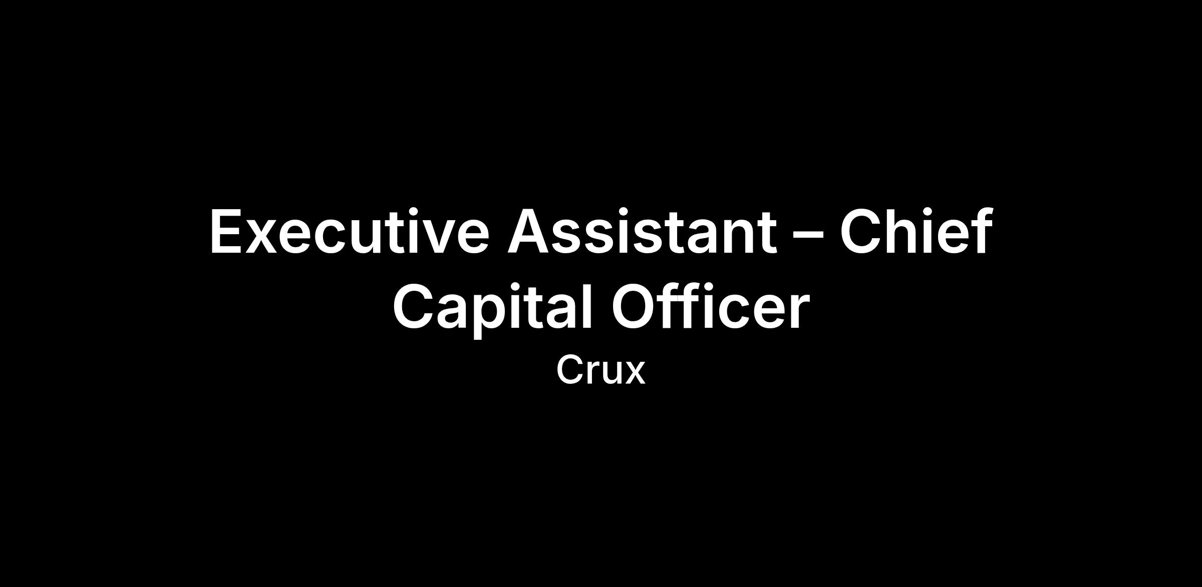 This is a true right-hand EA role. Not pure scheduling support. Not pure project management. We are hiring a force multiplier who can take ownership of how the CCO's time, communications, and operating cadence run day to day. You will act as a gatekeeper, an editor, and a quiet operator behind one of the busiest desks at Crux.