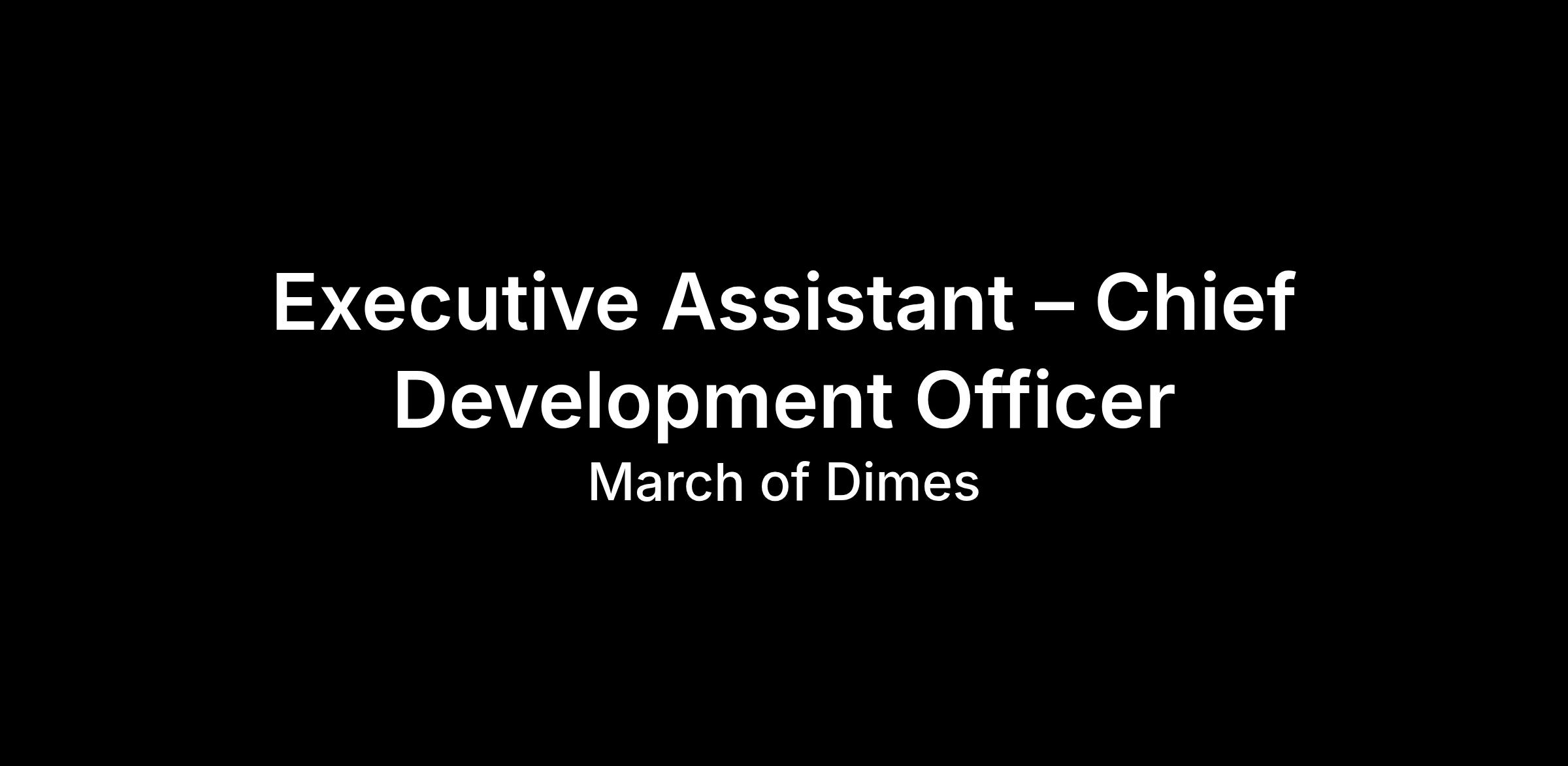 The Executive Assistant to the Chief Development Officer provides high-level administrative and strategic support to advance the mission and fundraising goals of March of Dimes. Requires exceptional organizational skills, discretion, and the ability to manage multiple priorities in a fast-paced nonprofit environment. The Executive Assistant serves as a key liaison between the CDO, internal teams, donors, board members, and external stakeholders.