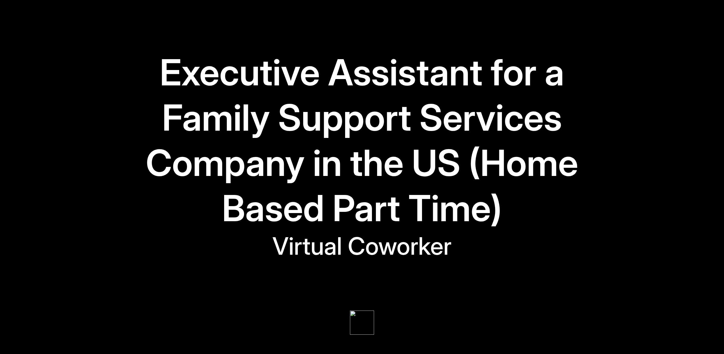 https:\/\/www.linkedin.com\/company\/virtual\-coworker"}],"isMobile":false,"iframe":"true","jobType":"Full time","applyName":"Apply Now!","zsoid":"8208015","FontFamily":"Arial, Helvetica, sans\-serif","jobOtherDetails":[{"fieldLabel":"Job Category","uitype":2,"value":"Virtual Assistant"},{"fieldLabel":"Work Schedule","uitype":1,"value":"Monday to Friday, Flexible hours (Central Standard Time)"},{"fieldLabel":"Hours Per Day","uitype":2,"value":"Part Time â 4 hours per day"},{"fieldLabel":"Industry","uitype":2,"value":"Health and Wellness"},{"fieldLabel":"Work Location","uitype":1,"value":"Home Based \- Philippines"},{"fieldLabel":"City","uitype":1,"value":"Springdale"},{"fieldLabel":"State\/Province","uitype":1,"value":"Arkansas"},{"fieldLabel":"Zip\/Postal Code","uitype":1,"value":"72762"}],"headerName":"Executive Assistant for a Family Support Services Company in the US (Home Based Part Time)","widgetId":"147741000000390320","isJobBoard":"false","userId":"147741000000027001","attachArr":[],"customTemplate":"3","isCandidateLoginEnabled":true,"jobId":"147741000069322013","FontSize":"12","location":"Springdale","embedsource":"CareerSite","logoId":"idwop0ece2fcac21a443ba16938fb832bdc3b"}