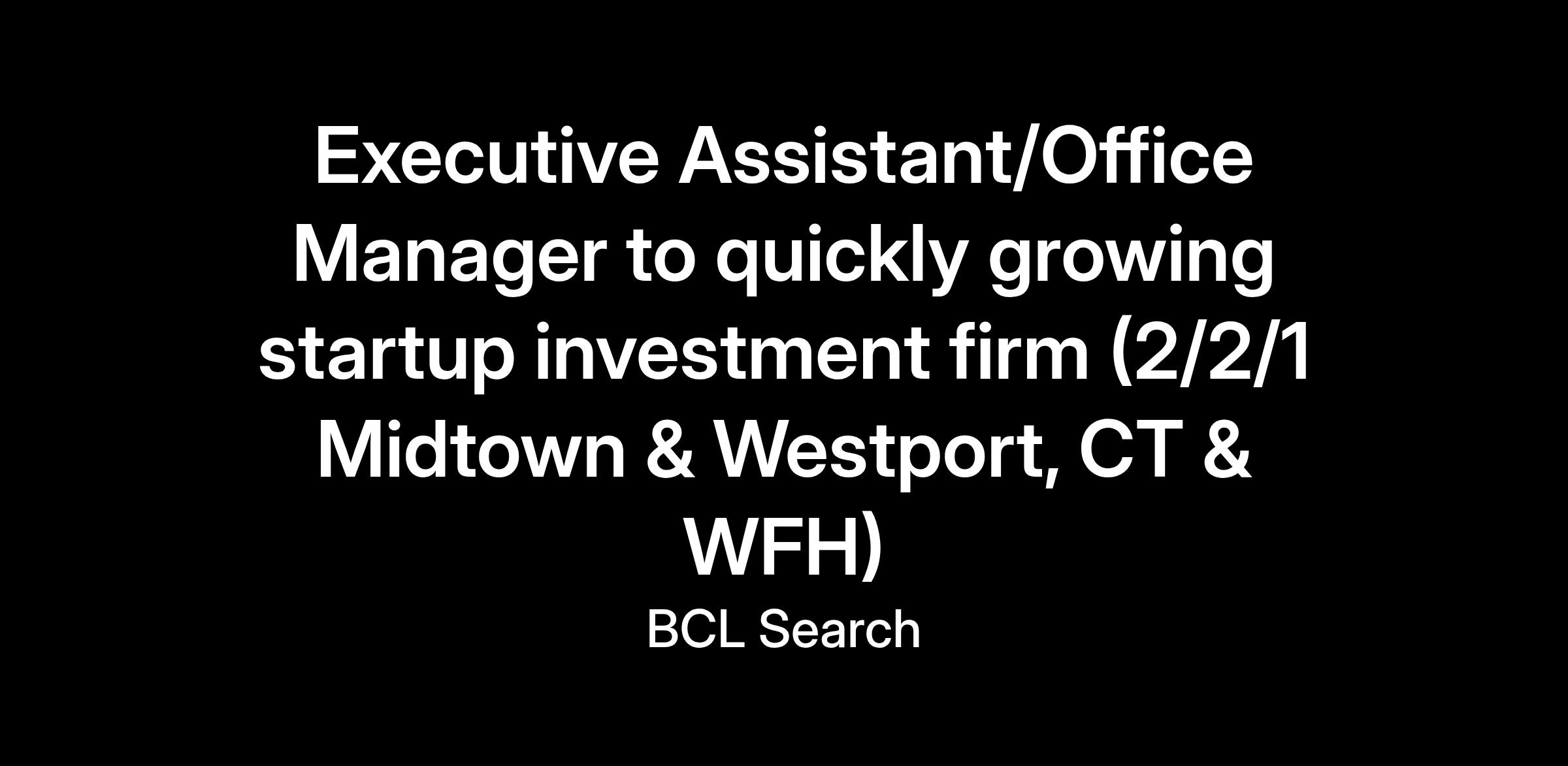 Executive Assistant/Office Manager to quickly growing startup investment firm (2/2/1 Midtown & Westport, CT & WFH)