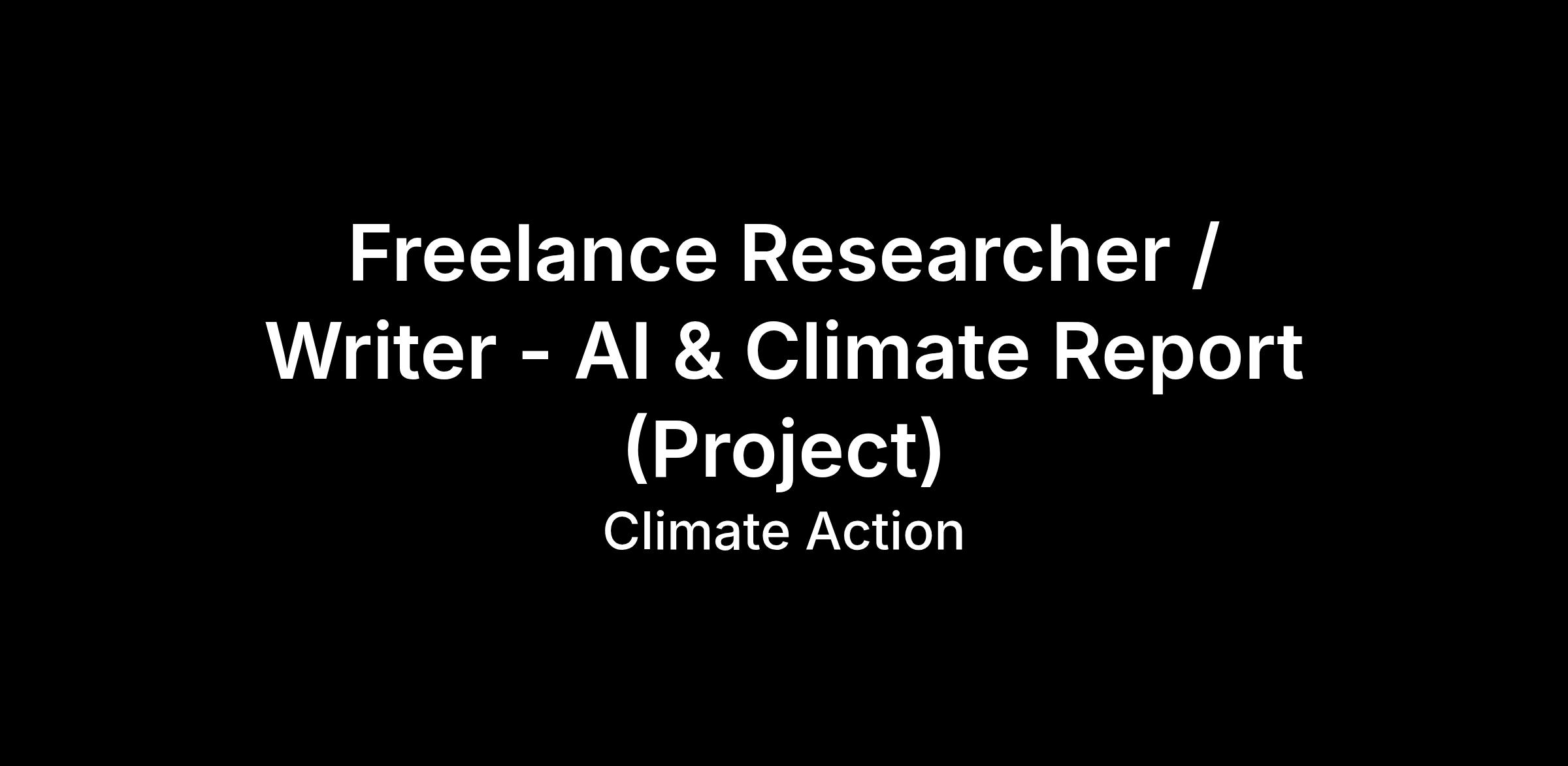 DescriptionWeâre looking for a freelance researcher/writer to support the development of a 20,000-word report for the Climate Action Coalitionâs AI Taskforce exploring the role of AI in the energy transition.