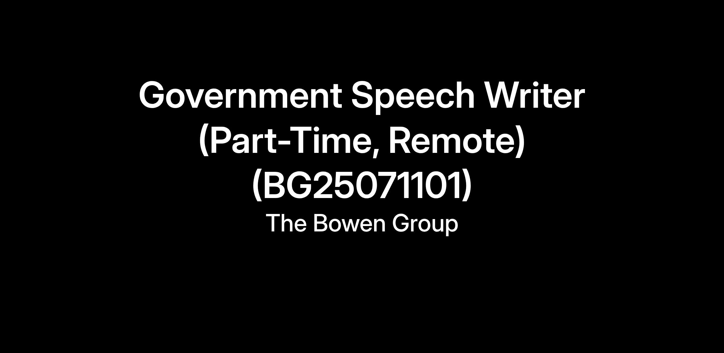 We are searching for a part-time Executive Speech Writer/Editor to join our team. This is a remote job opportunity that requires being a US Citizen and ability to pass a clearance check.