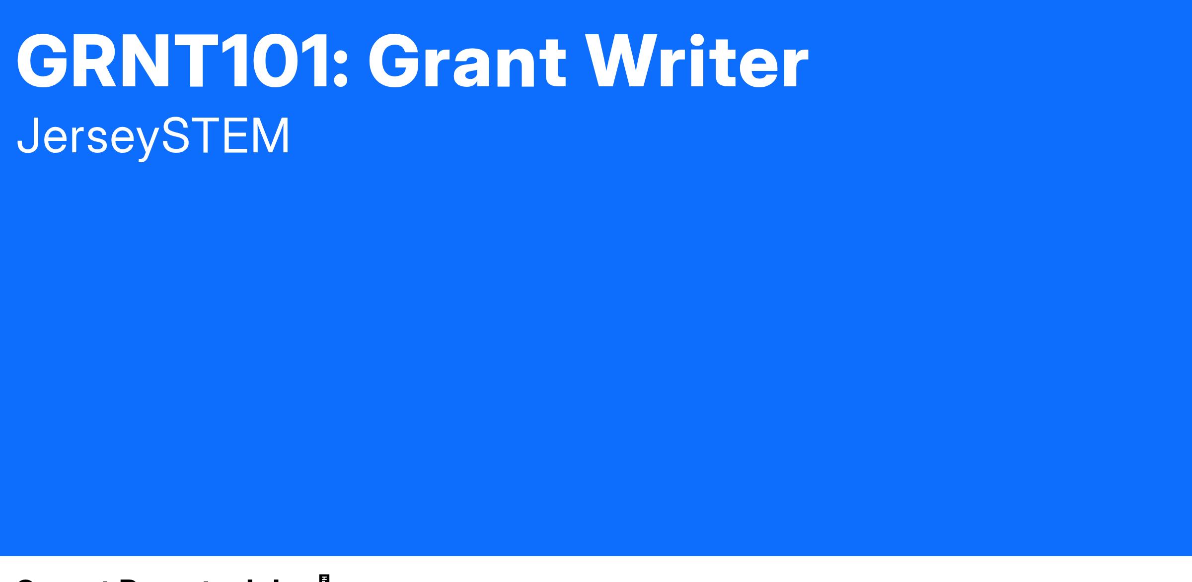 In addition to Corporate and Individual donations, Grants are a potential large source of financial support for the JerseySTEM mission. As a Grant Writer you'll be helping JerseySTEM to source grants and complete grant documents.