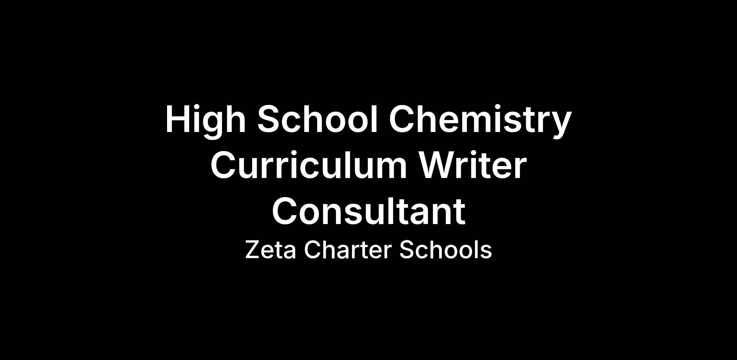 To achieve our vision, we are searching for a High School STEM Curriculum Writer Consultant with a Bachelorās degree in Chemistry, Masterās degree preferred,Ā and at least three years of experience with a proven record of developing rigorous, standards-aligned curriculum that drives strong student outcomes.