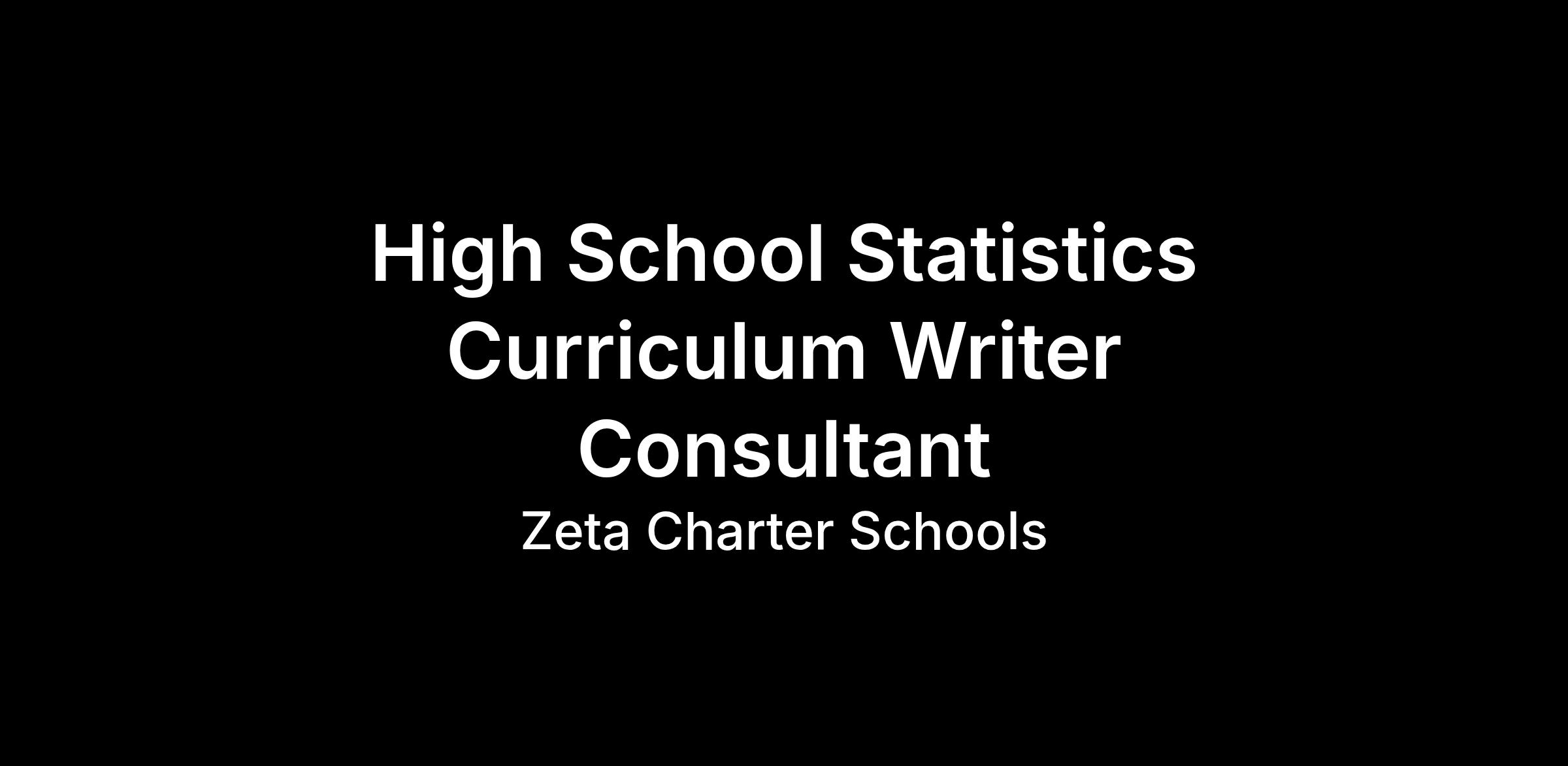 To achieve our vision, we are searching for a High School STEM Curriculum Writer Consultant with a Bachelorās degree in Statistics, Masterās degree preferred, and at least three years of experience with a proven record of developing rigorous, standards-aligned curriculum that drives strong student outcomes.