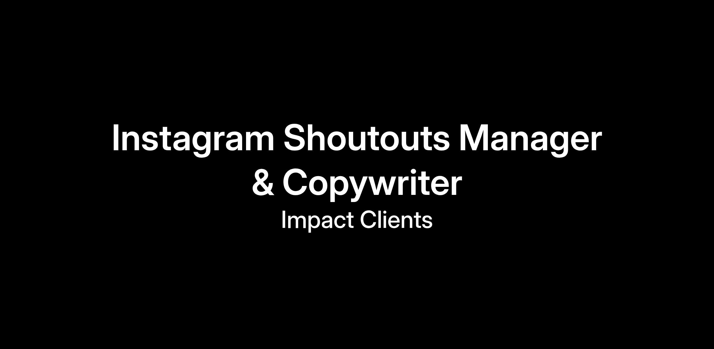 We’re hiring a Instagram Shoutout specialist.