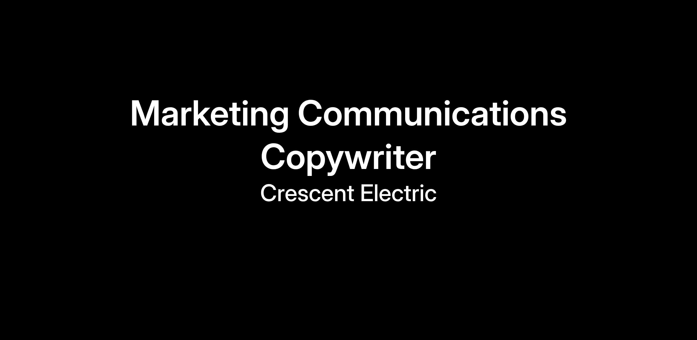 As the Marketing Copywriter at Crescent Electric you will create and take ownership of copy creation and play a key role in content strategy for all marketing efforts in a variety of mediums and formats. This role will be embedded in Crescent's marketing team, and work closely with the product management, HR, supply chain, customer experience, eCommerce, digital, and sales teams to bring awareness of company initiatives and drive sales.