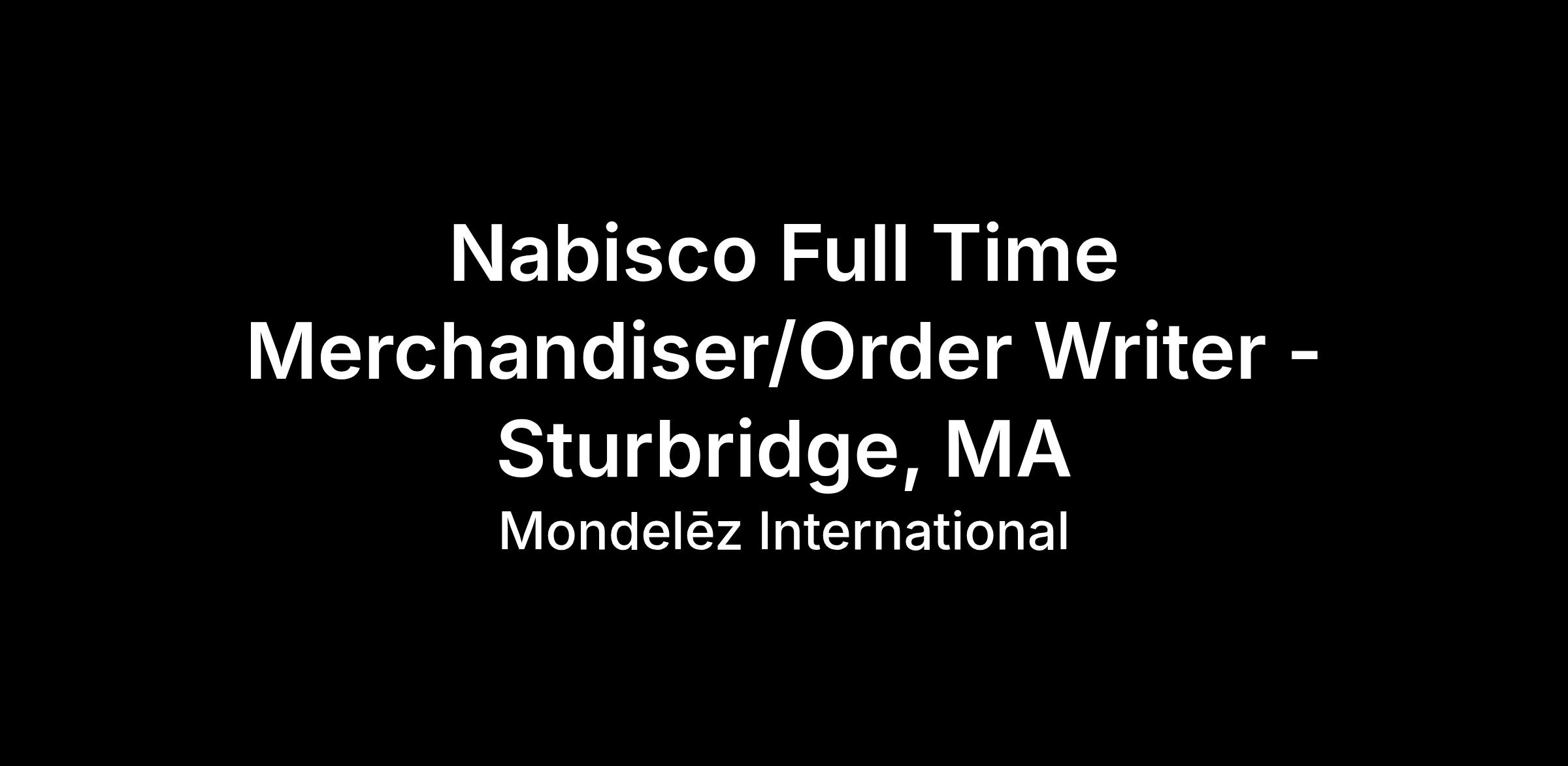 Full Time Nabisco Merchandiser/Order Writer