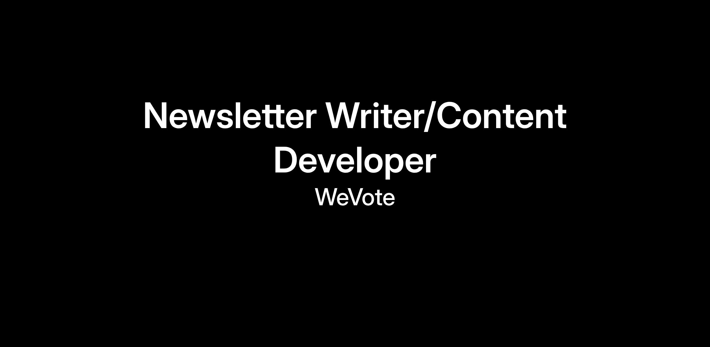 Calling all journalists! WeVote, a nonpartisan nonprofit technology startup building the next generation of voting tech, has an open volunteering position for a Newsletter Writer / Content Developer (2-3+ hours per week) who wants to use their existing skills and learn new skills, while helping strengthen American Democracy. The newsletter writer will be tasked with writing engaging and informative content that shares news, information, goals, and wins for our all-volunteer voter activation nonprofit. We are looking for a writer to join the team who will help draft content that aligns with our mission and values. You will assist with content planning and may also be asked to help with research, interviewing, and writing including writing stories, volunteer profiles, event info, and related news, all designed to build awareness and do a bit of cheerleading. The ideal candidate will have excellent writing and editing skills and experience working with volunteers and/or in a nonprofit setting. This remote role is perfect for journalism students building portfolios or freelance journalists wanting to cover the evolving election landscape.