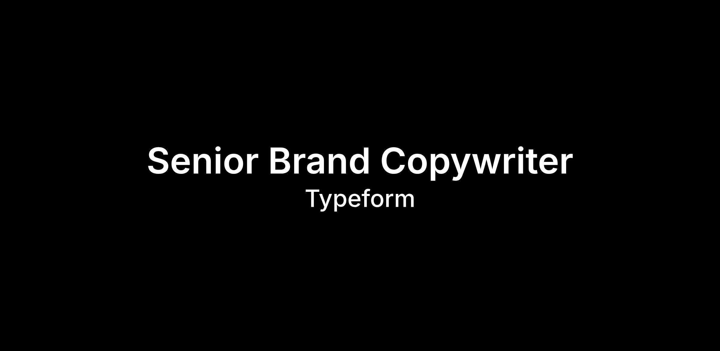 Weâre looking for a Senior Brand Copywriter to help us scale and evolve Typeformâs voice across marketing and product touchpoints. Youâll join our Creative team and work closely with Brand Design, Product Marketing, Product, Growth, and Content to bring clarity, consistency, and personality to everything we say.
