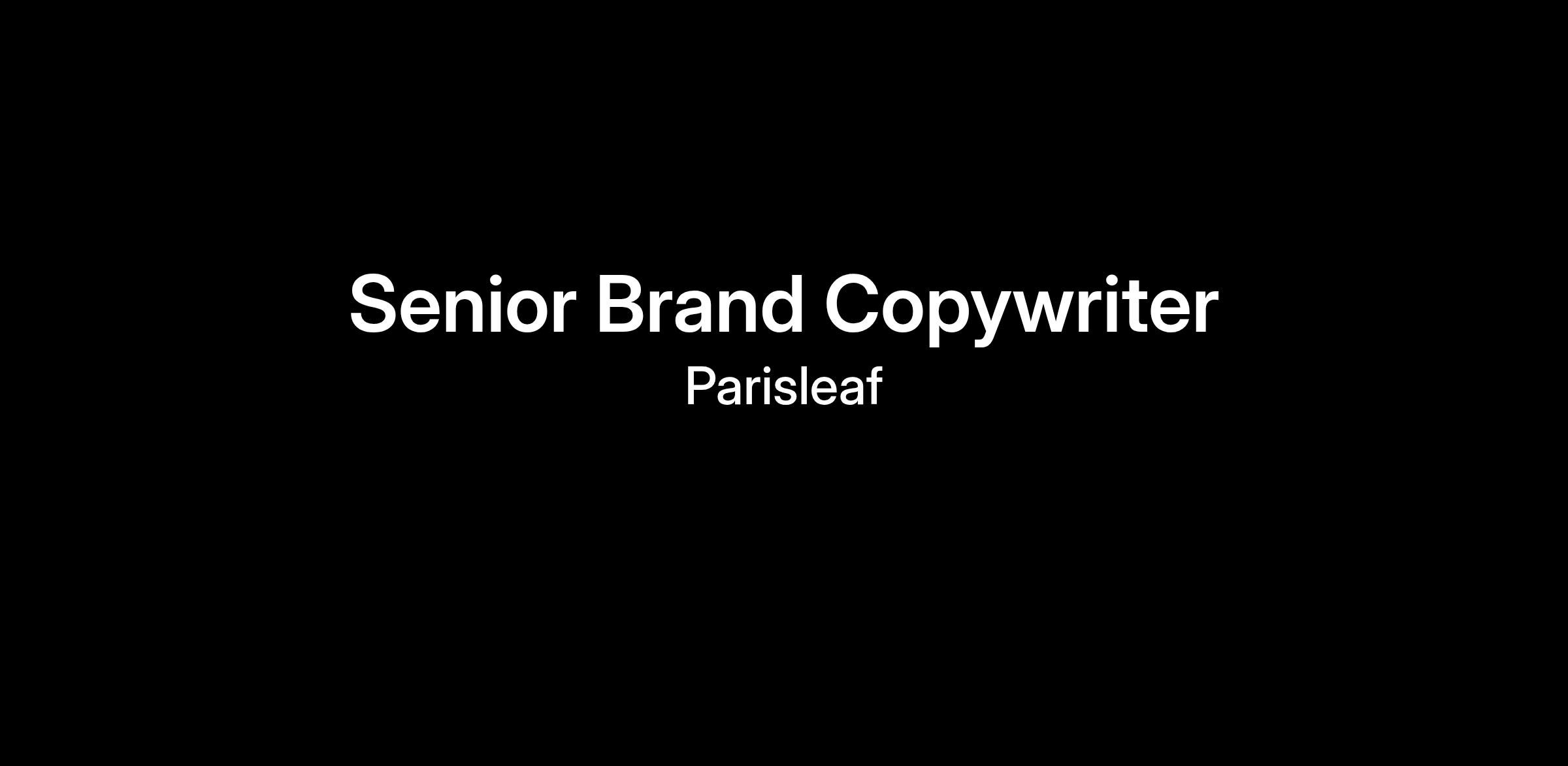This is a Senior-level Brand Copywriter position. 10+ years of experience in a writing role on projects that include design — brand agency experience preferred. At Parisleaf, we expect a person in this role at this level to: