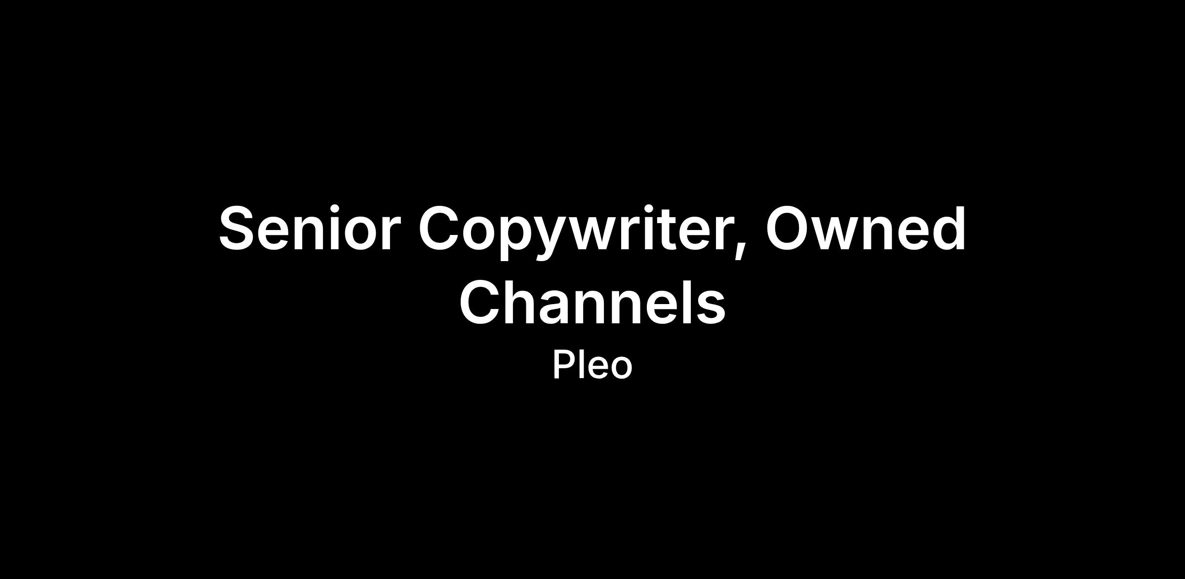 We're looking for a Senior Copywriter, Owned Channels to join our Content Marketing team at Pleo. In this role, you'll help own and evolve the narrative arc of the Pleo customer journey and be part of the Marketing team as we scale from a âcard providerâ to a full-suite spend management platform. If you're excited about bridging the gap between creative strategy and CMS implementation and are passionate about fintech and B2B SaaS, then this is the opportunity for you!