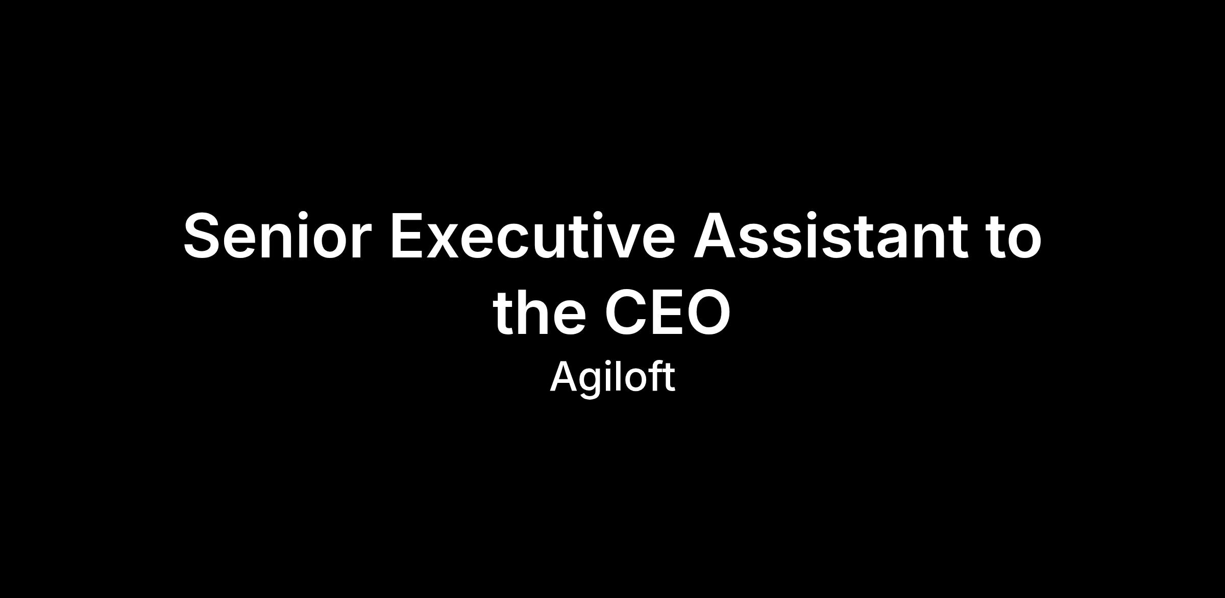 Agiloft is seeking a highly skilled, warm, and relationship-oriented Senior Executive Assistant to support our CEO and, secondarily, our Executive Leadership Team (ELT). This individual will serve as the operational backbone behind the CEO’s work — enabling him to focus on strategic priorities by owning and optimizing all administrative, scheduling, communication, and travel workflows.