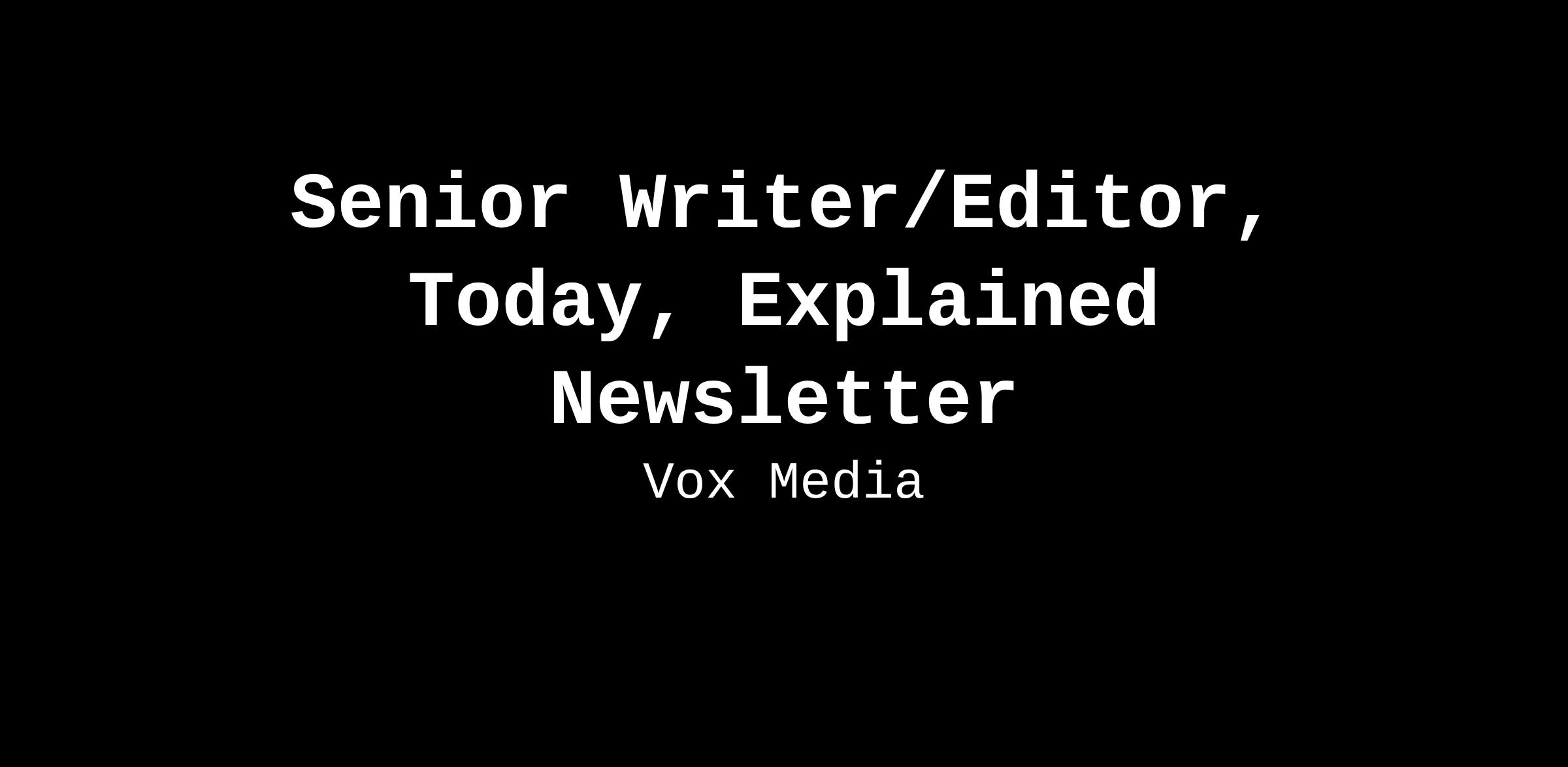 Vox is seeking a creative, flexible journalist to lead the Today, Explained newsletter, our flagship daily email product.