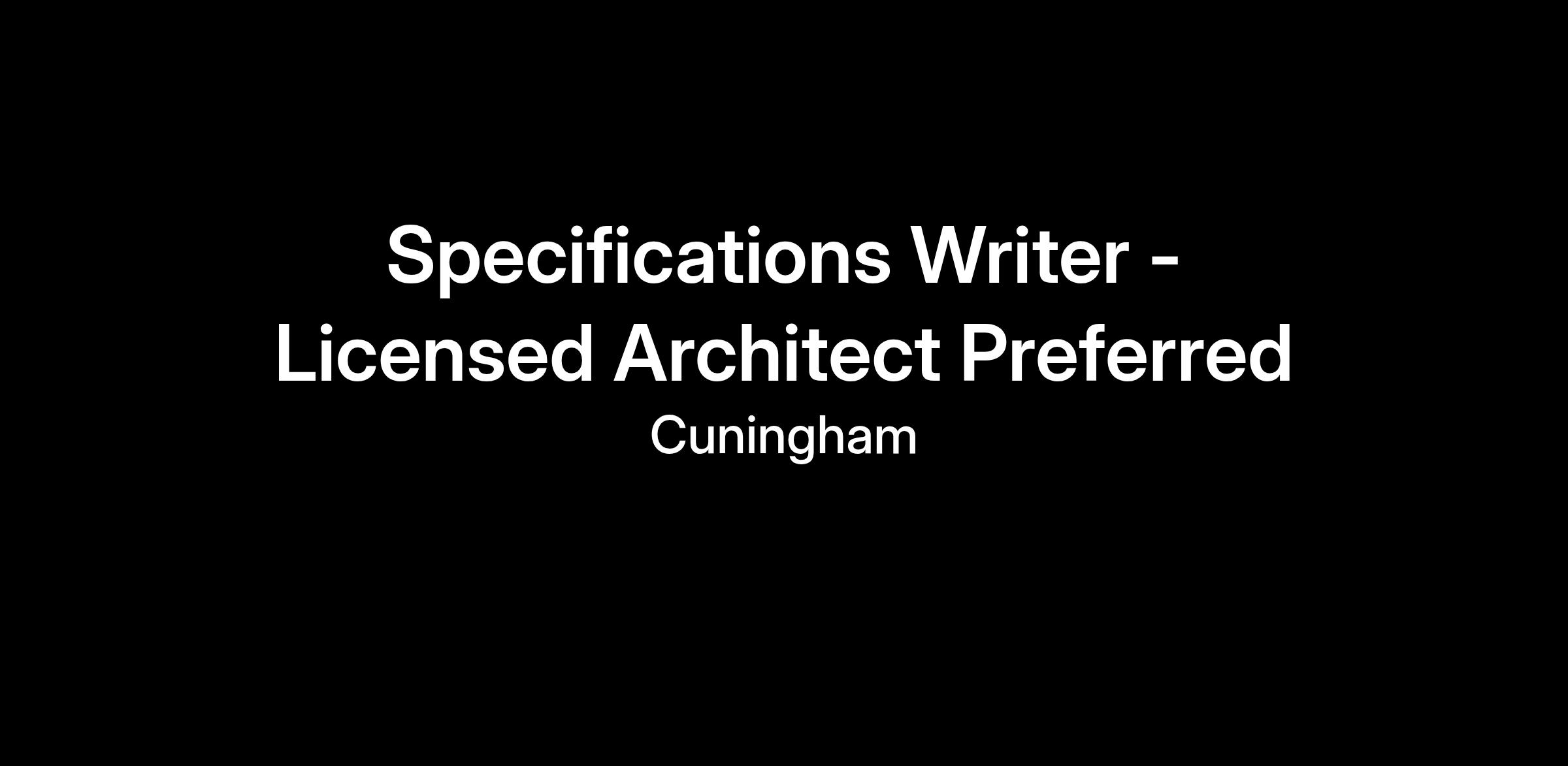 Cuningham is seeking a Specifications Writer with a background in Architecture to join our team. This role is critical to ensuring the successful delivery of comprehensive, high-quality project documentation on small- and medium-scale projects. The Specifications Writer will collaborate closely with project teams, consultants, and disciplines across the firm to develop clear, coordinated, and technically accurate CSI MasterFormat specifications that align with client needs and Cuningham’s regenerative design goals.