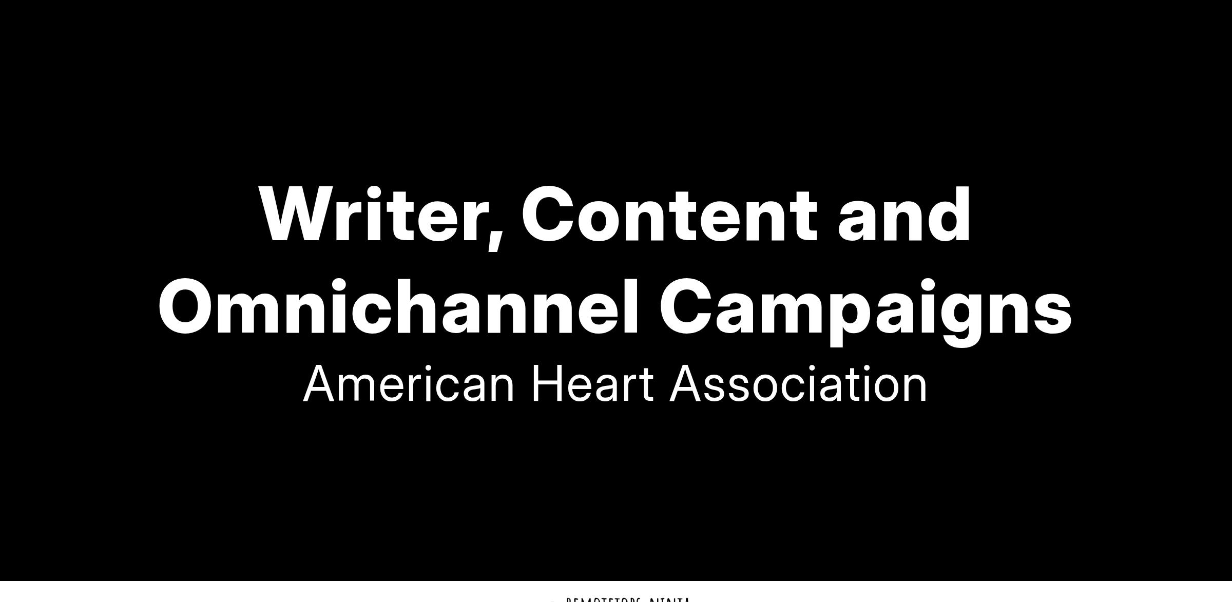 The American Heart Association has a great opportunity for a Writer, Content and Omnichannel Campaigns. This position can be home based.