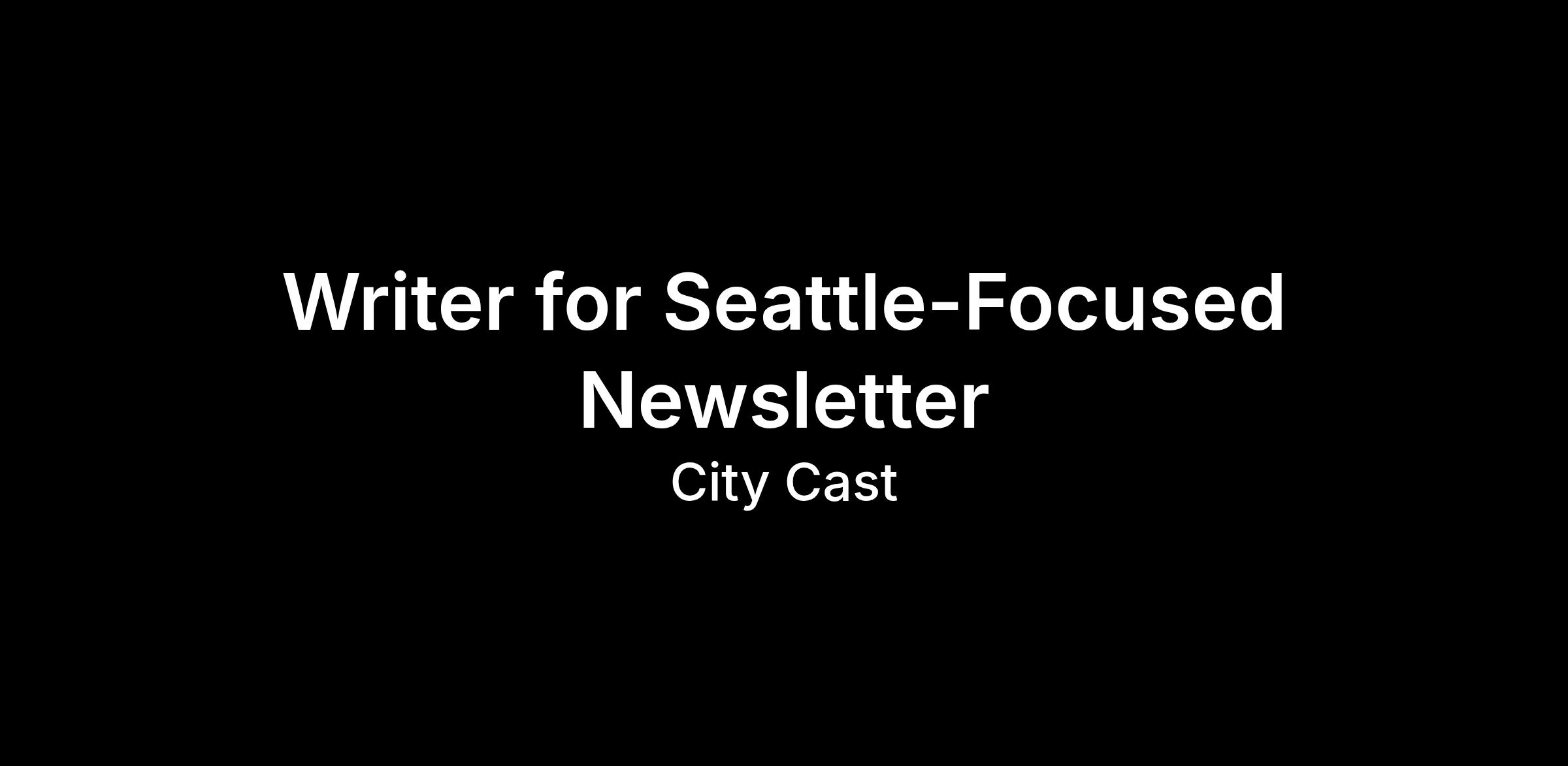 DescriptionCity Cast is looking for a sharp, voicey writer to create a new weekly newsletter that complements our existing daily City Cast Seattle newsletter and podcast. While our daily products cover Seattle's news and happenings, this weekly newsletter will go deeper on a specific topic that Seattleites are passionate about.