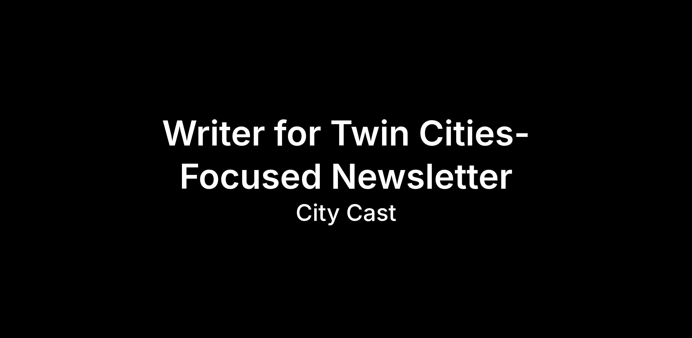 City Cast is looking for a sharp, voicey writer to create a new weekly newsletter that complements our existing daily City Cast Twin Cities newsletter and podcast. While our daily products cover Twin Cities's news and happenings, this weekly newsletter will go deeper on a specific topic that Twin Citizens are passionate about.